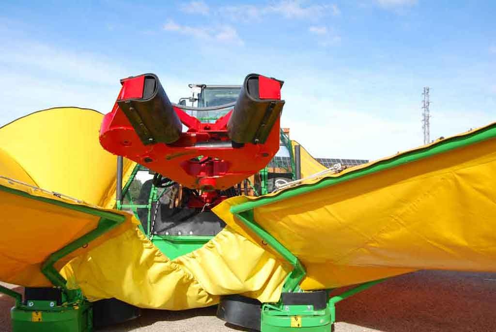 Equipo recolector para ser acoplado frontalmente sobre tractores agricolas DT que ya dispongan de brazos de pala, a partir de 120 CV